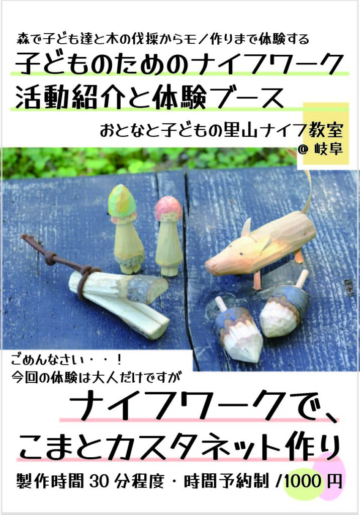 ここ数年、以前は岐阜で。昨年は北海道(札幌市)で開催していた、子ども達とナイフを使ったモノ作りをしたい!と考える大人向け(指導者向け)の講習会のご案内も、この日に行う予定でいます。